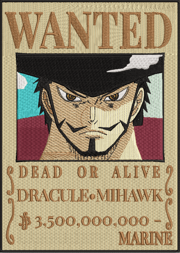 t shirt con ricamo wanted di mihawk